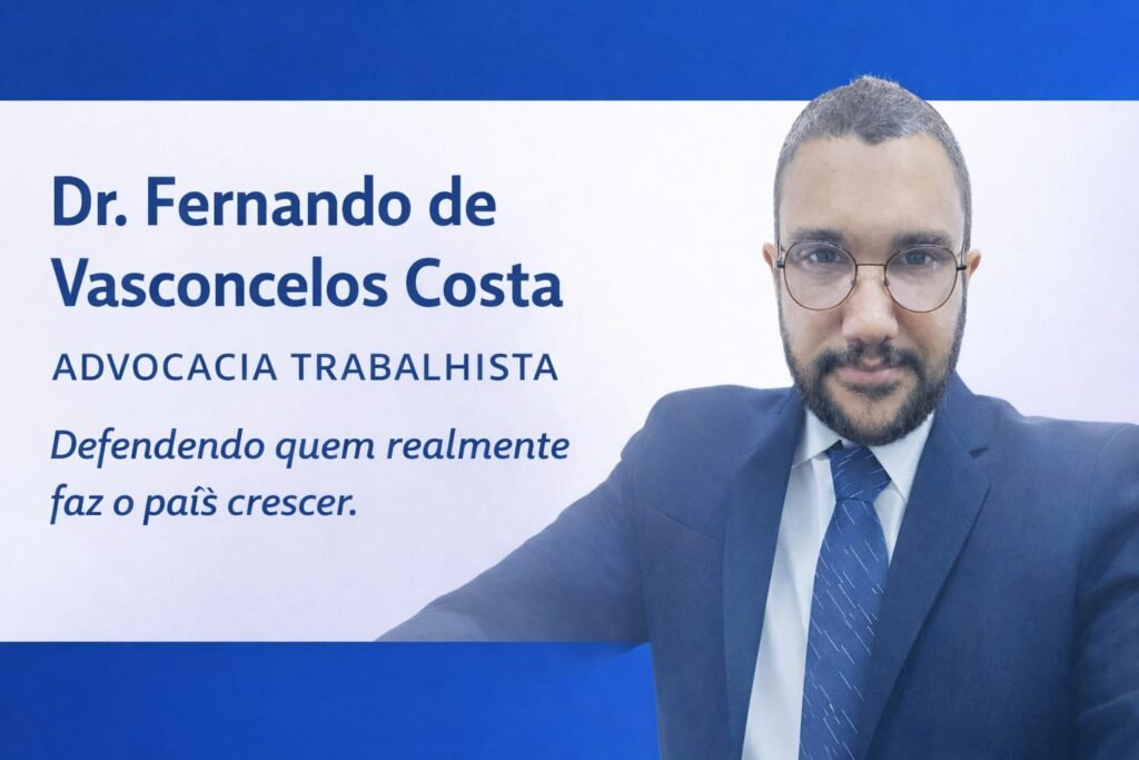 O Dr. Fernando de Vasconcelos Costa é advogado atuante em Direito do Trabalho, com trajetória marcada por estudo contínuo, rigor técnico e atuação firme na Justiça do Trabalho.